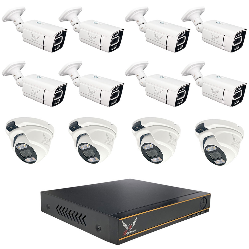 - 8 عدد دوربین بولت 5 مگاپیکسل رایمون مدل RB-5MP-8302-POE: با قابلیت دید در شب و مقاومت در برابر شرایط آب و هوایی سخت.